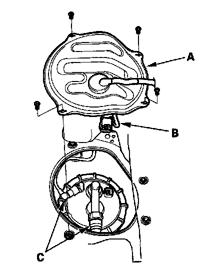 7. Disconnect the quick-connect fittings (C) from the fuel tank unit.