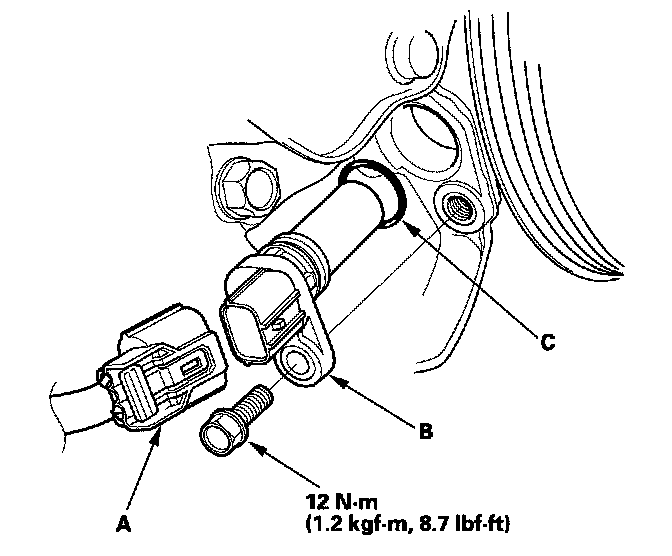 3. Install the parts in the reverse order of removal with a new O-ring (C).