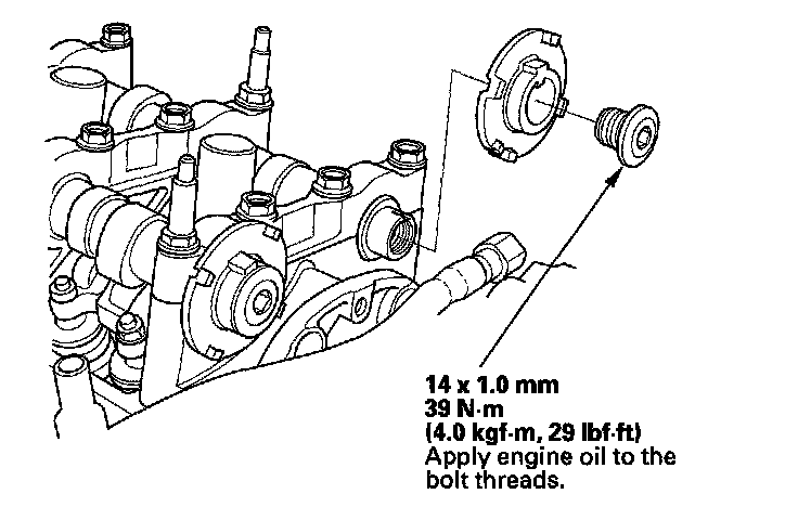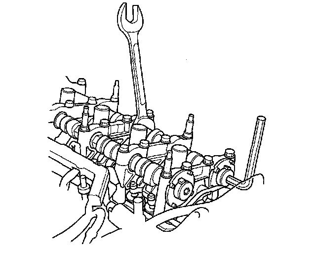 3. Hold the camshaft with a 27 mm open-end wrench, then loosen the bolt.