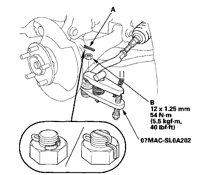 10. Remove the cotter pin (A) from the tie-rod end ball joint, then remove the nut (B).