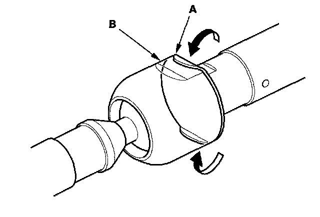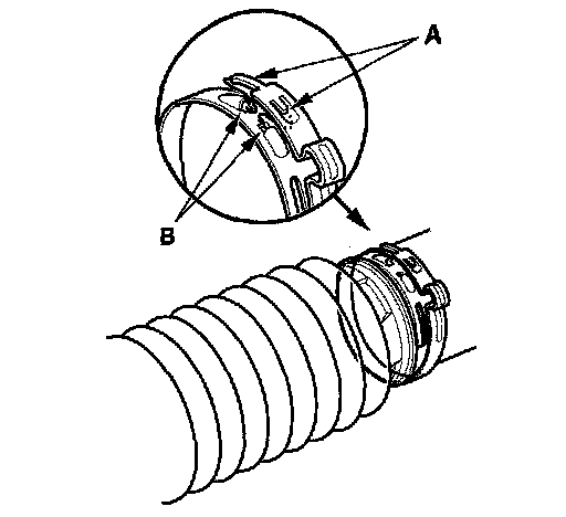 9. Install the new boot bands by aligning the tabs (A) with the holes (B) of the band.