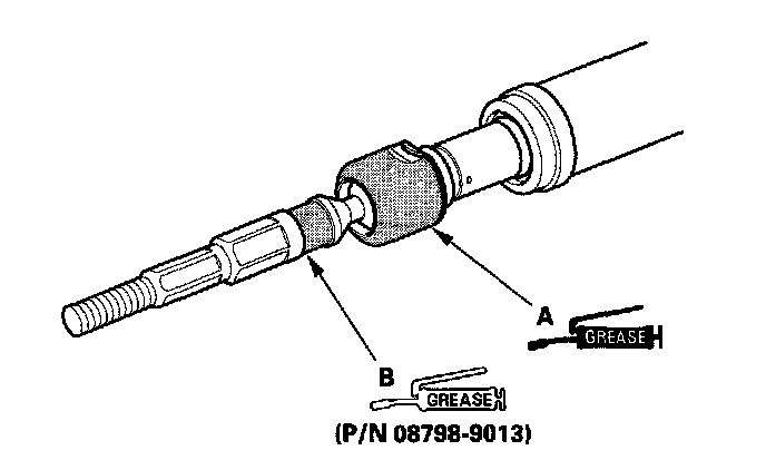 5. Apply a light coat of silicone grease (P/N 08798-9013) to the boot fitting grooves (B) on the rack ends.