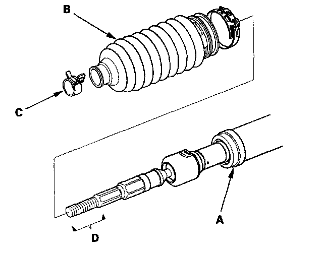 8. After installing the boots, wipe the grease off the thread section (D) of the rack end.