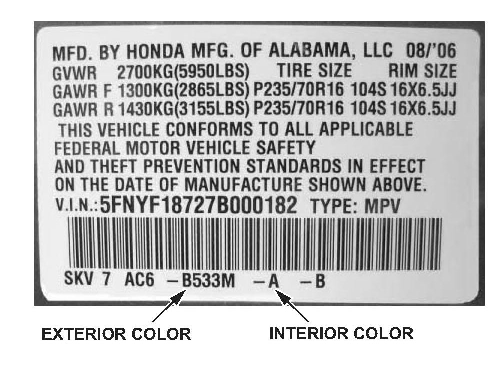 2007 Honda Paint Codes, Exterior and Interior Color Code Locations