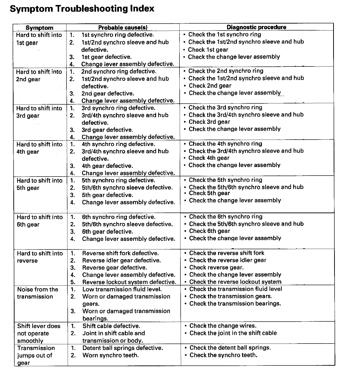 Symptom Troubleshooting Index: