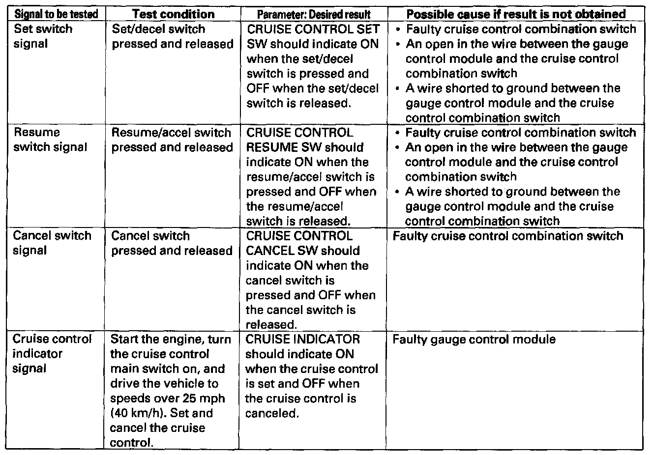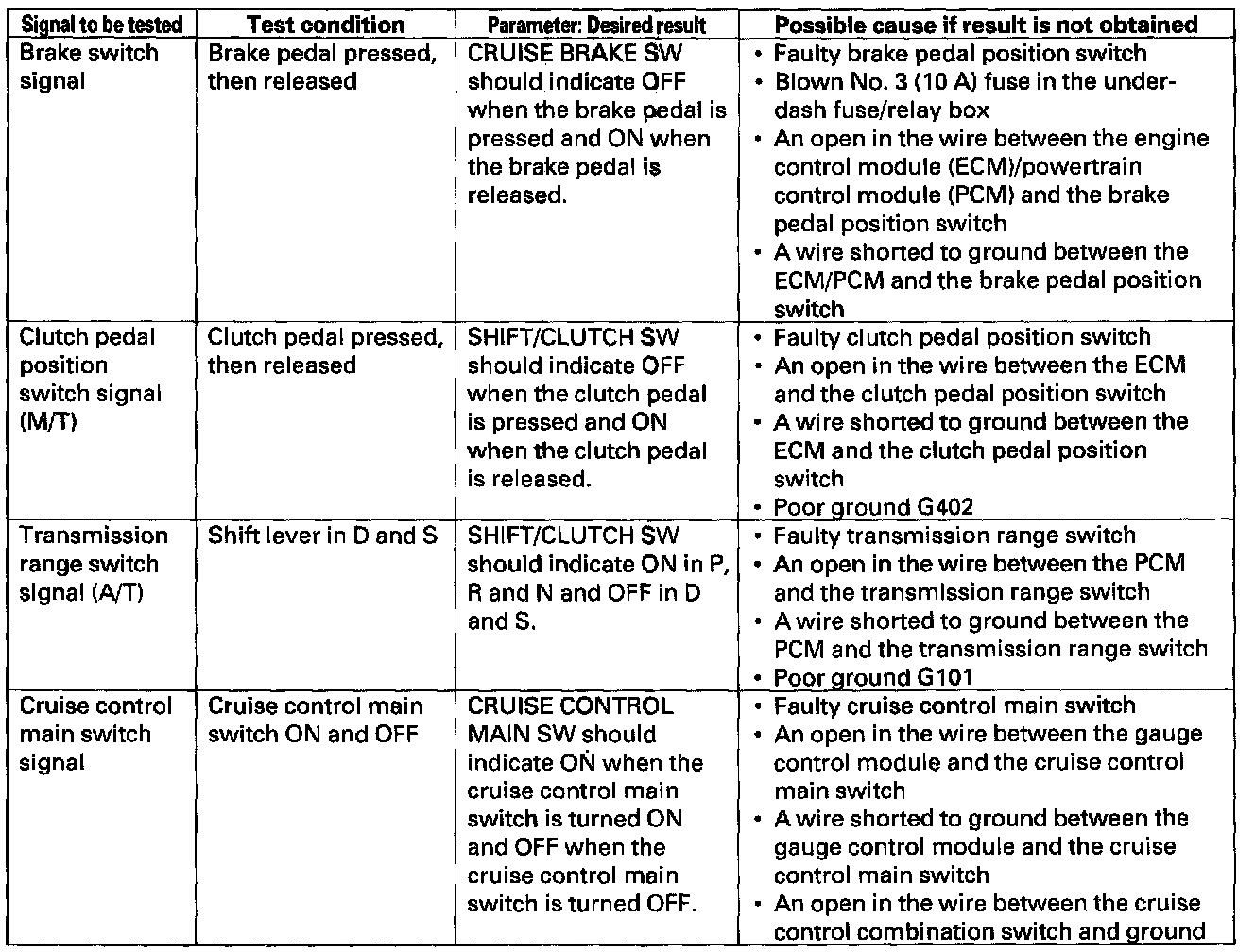 NOTE: Intermittent failures are often caused by loose circuit connections. While monitoring cruise control inputs, flex their circuits, and note if any of the test results change.