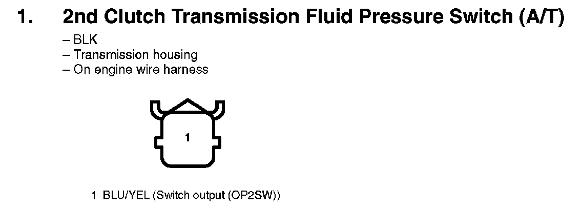 1. 2nd Clutch Transmission Fluid Pressure Switch (A/T):