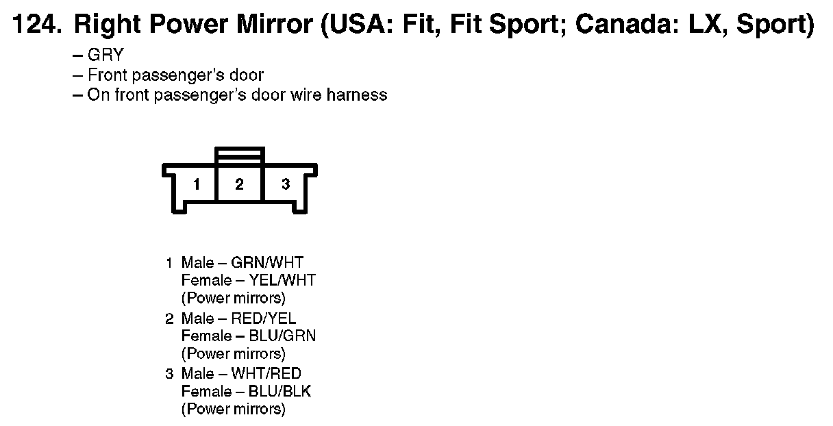 124. Right Power Mirror (USA: Fit, Fit Sport; Canada: LX, Sport):