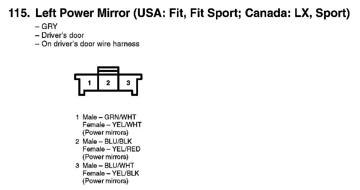 115. Left Power Mirror (USA: Fit, Fit Sport; Canada: LX, Sport):