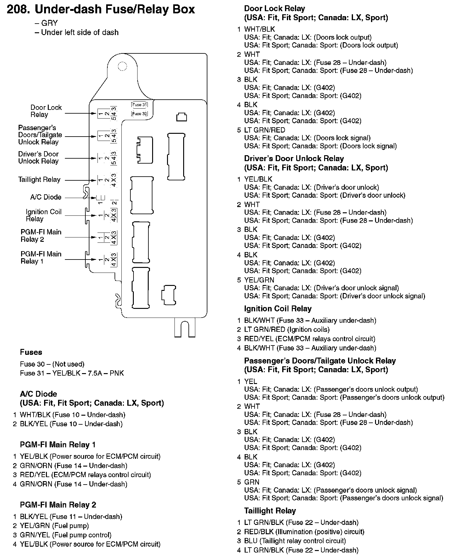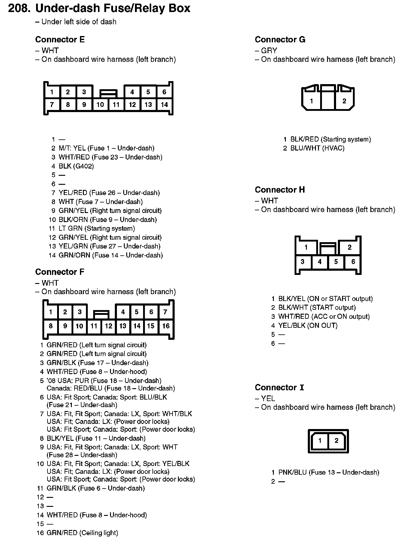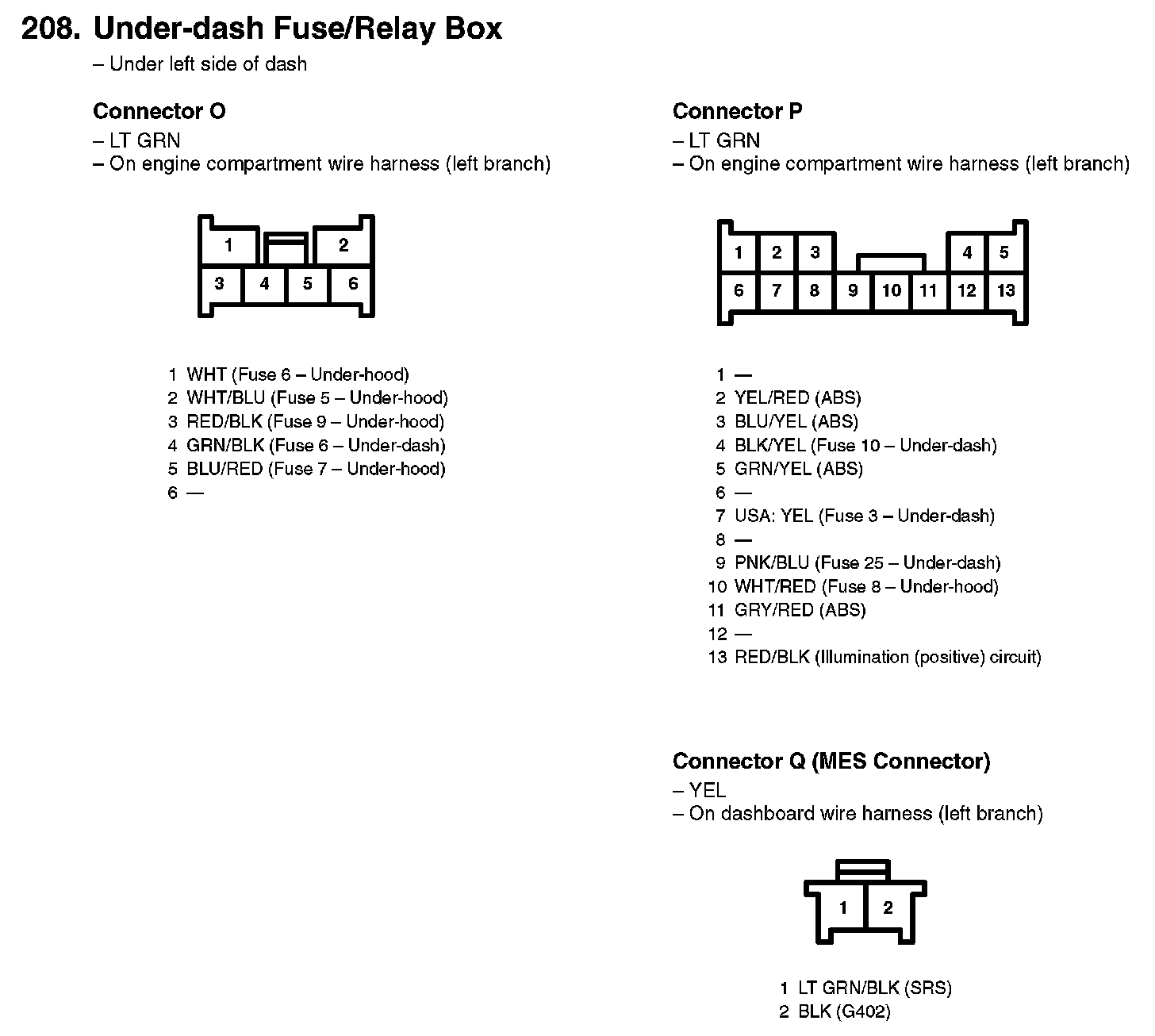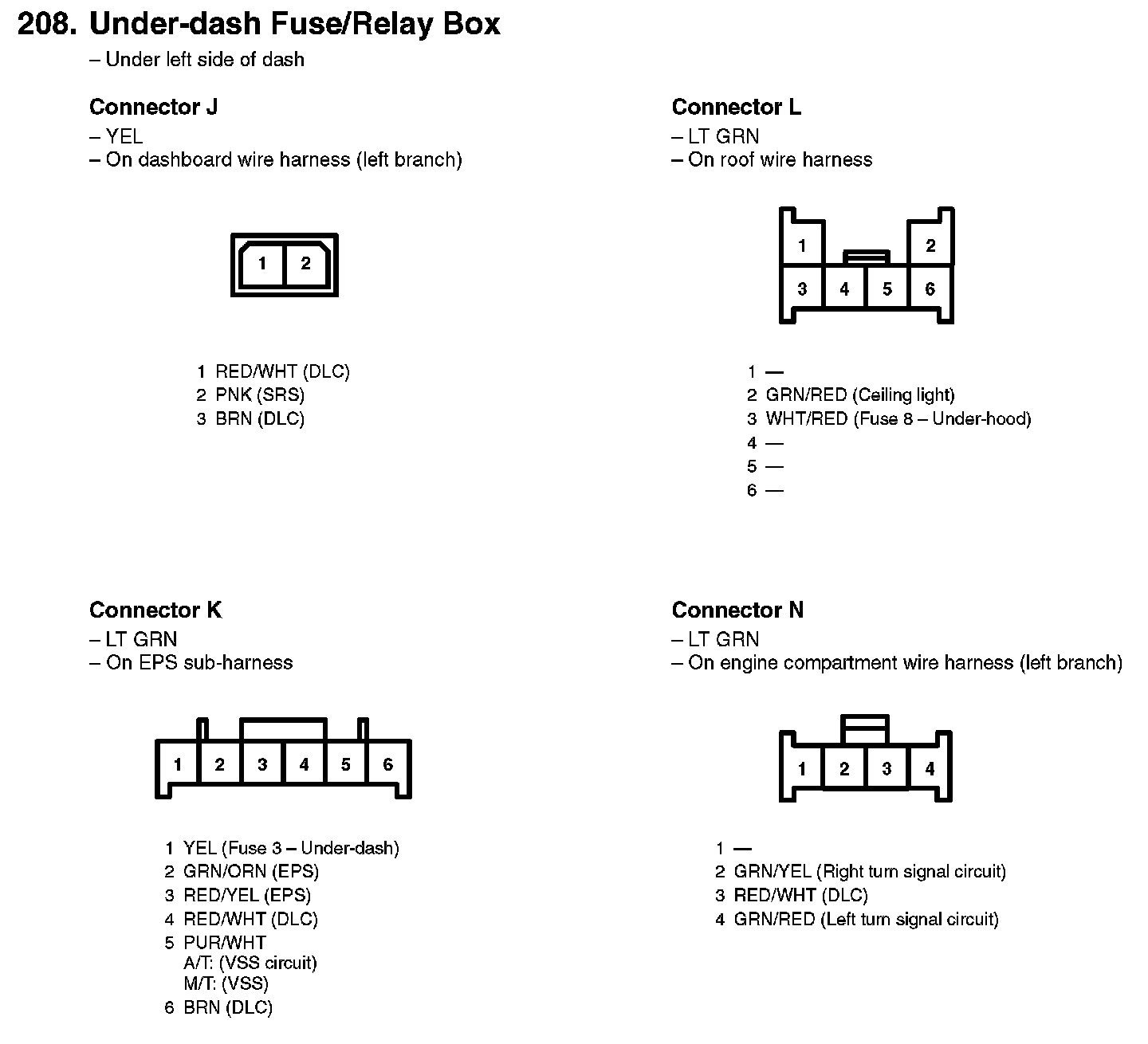 208. Under-dash Fuse/Relay Box:
