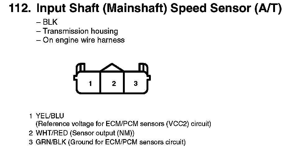 112. Input Shaft (Mainshaft) Speed Sensor (A/T):