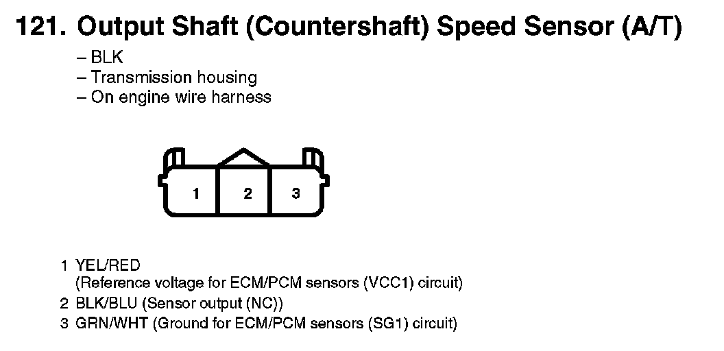 121. Output Shaft (Countershaft) Speed Sensor (A/T):