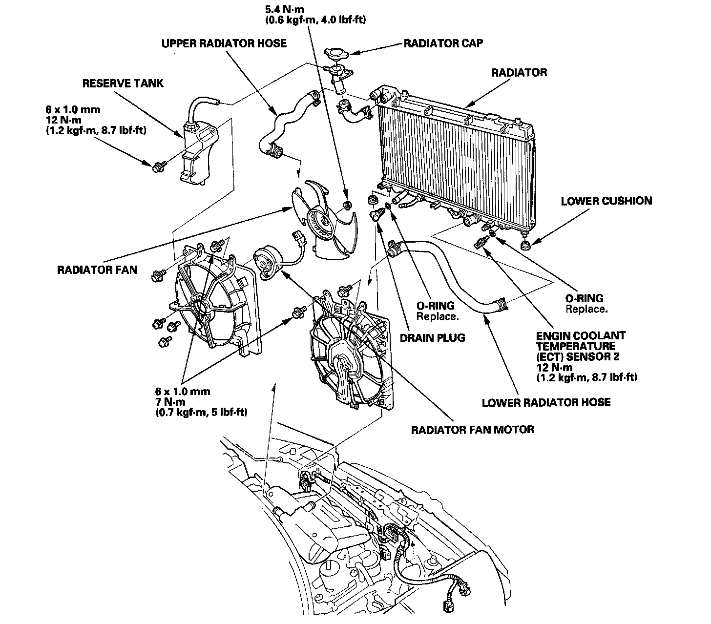 Radiator and Fan Replacement1. Make sure you have the anti-theft code for the audio unit, then write down the audio presets.