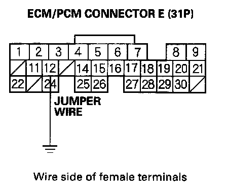 3. Connect the ECM/PCM connector E (31P) terminal No. 12 to body ground with a jumper wire.