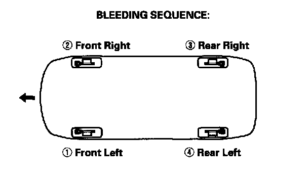 NOTE: Bleed the calipers or the wheel cylinders in the sequence shown.