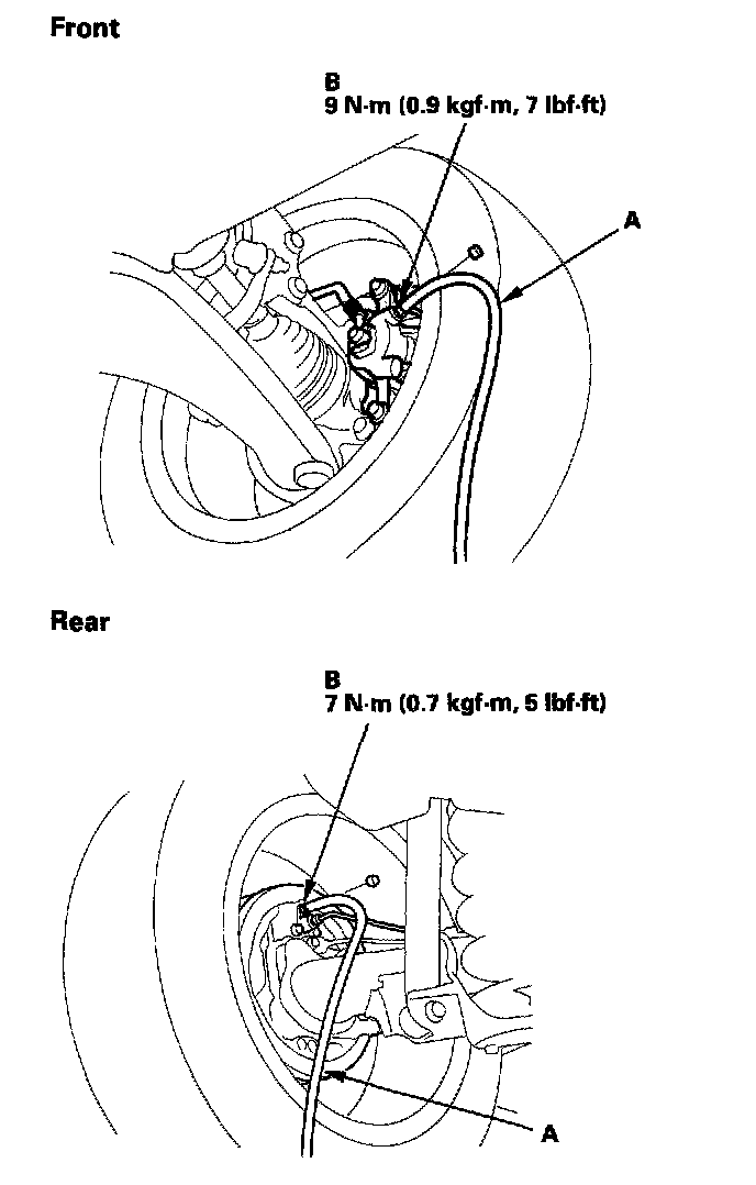 4. Attach a length of clear drain tube (A) to the bleed screw (B), then, loosen the bleed screw to allow air to escape from the system. Then tighten the bleed screw securely.