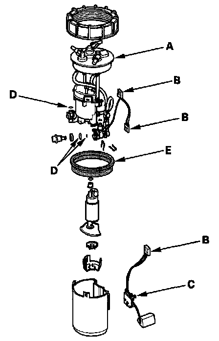 - When installing the fuel gauge sending unit (C), make sure the connection is secure and the connector is firmly locked into place. Be careful not to bend or twist it excessively.