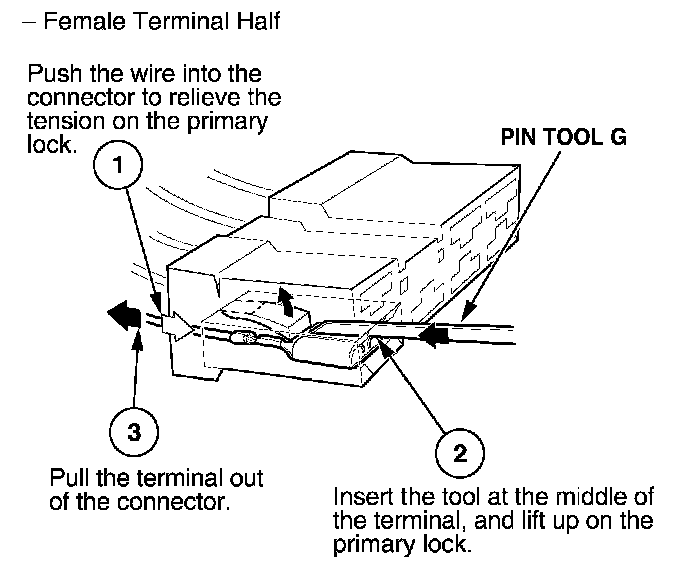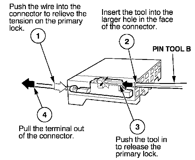 Before you begin, inspect the wire you are about to repair for damage and length. Make sure the wire will be long enough to make a terminal repair without stretching it when you reinstall the terminal in the connector. If the wire is too short, or if access to the connector is too restricted to make a terminal repair, you may need to install a pigtail terminal (a short length of wire with a factory-crimped terminal on it). Refer to HOW TO INSTALL PIGTAIL TERMINALS.