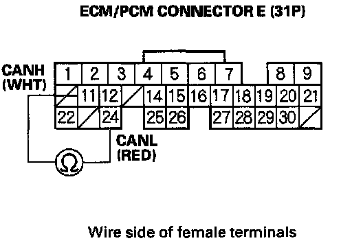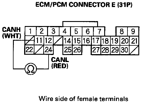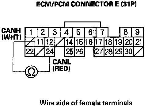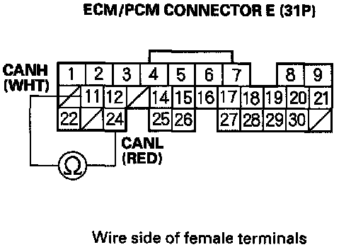 4. Measure resistance between ECM/PCM connector terminals E11 and E24.