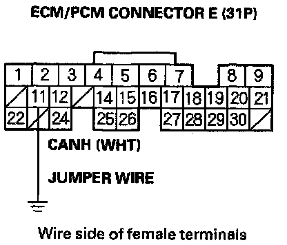 11. Remove the jumper wire from ECM/PCM connector E(31P).