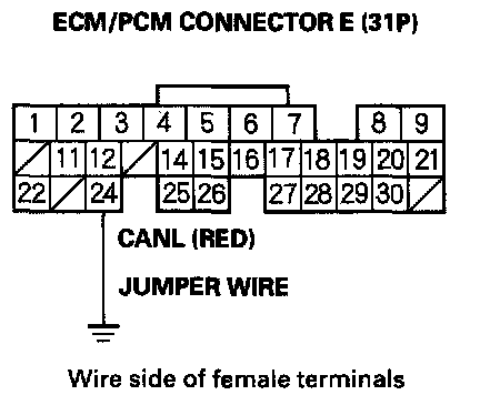 12. Connect ECM/PCM connector terminal E24 to body ground with a jumper wire.