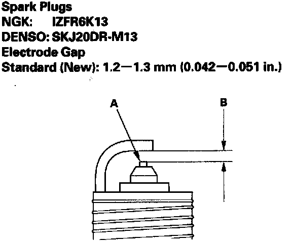 NOTE: Do not adjust the gap (B) of iridium tip plugs.