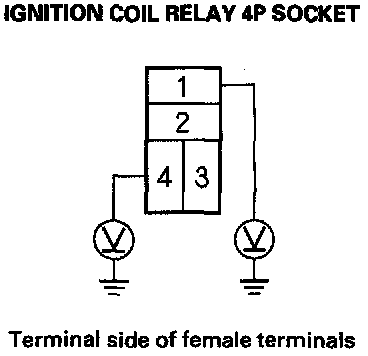 3. Measure the voltage between ignition coil relay 4P socket terminal No.1 and body ground, then terminal No.4 and body ground.