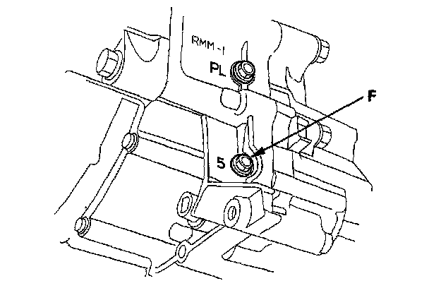 27. Shift to the R position, then release the brake pedal. Raise the engine speed to 2,000 rpm, and measure the 5th clutch pressure at the 5th clutch pressure inspection port (F).