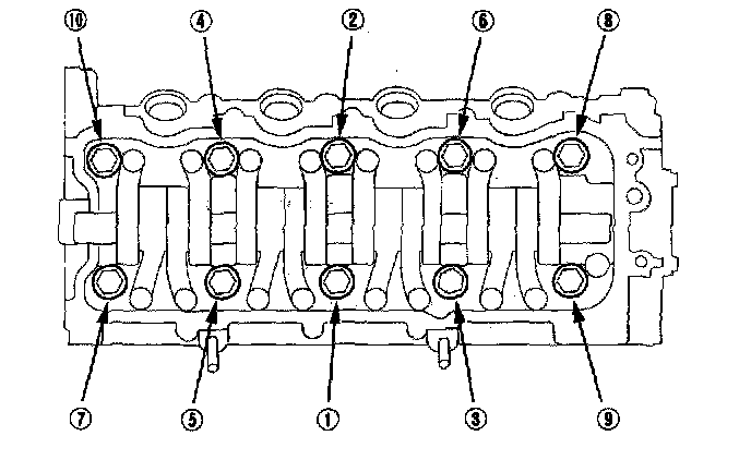 Tighten the bearing cap bolts in sequence to 25 N.m (2.5 kgf.m, 18 lbf.ft).