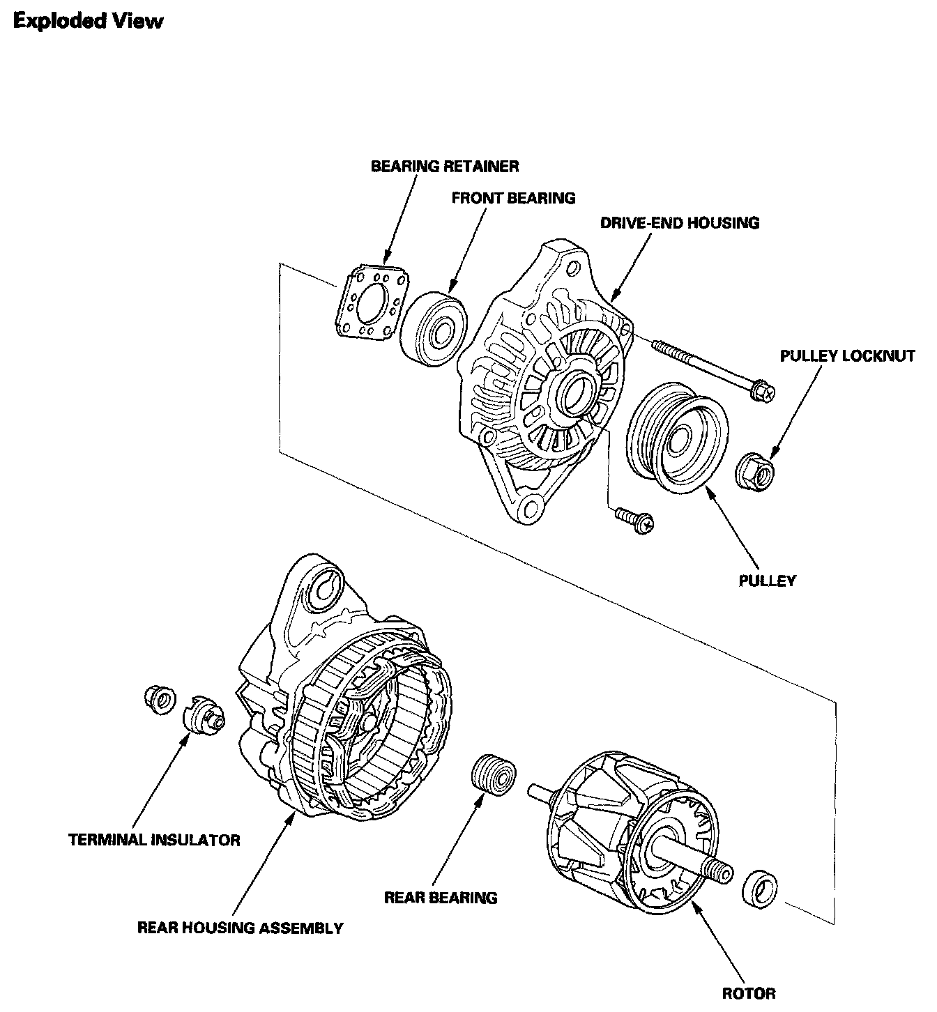 - If either the rotor or drive-end housing is damaged, replace the alternator.