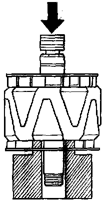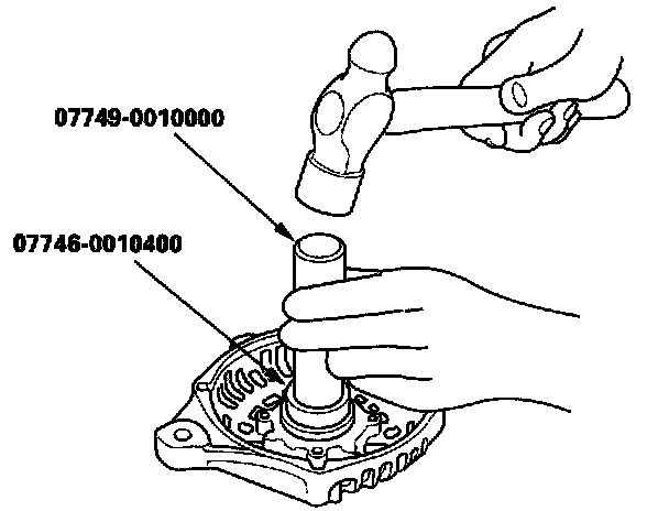 14. With a hammer and the special tools, install a new front bearing in the drive-end housing.