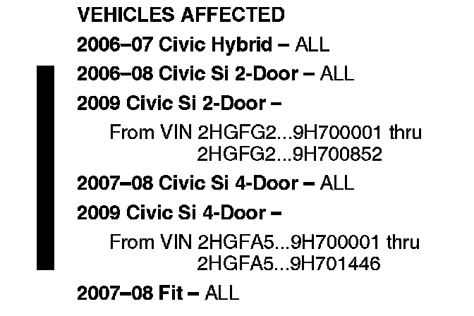 VEHICLES AFFECTED