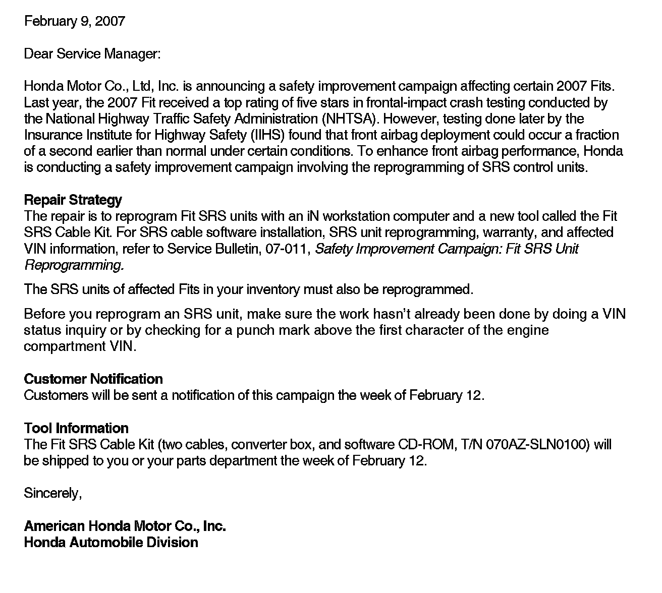 Campaign - Air Bag Module Programming