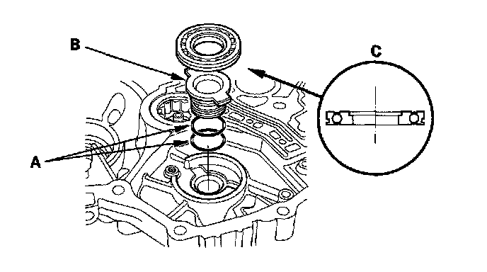 4. Install the new secondary shaft bearing (C) in the direction shown.