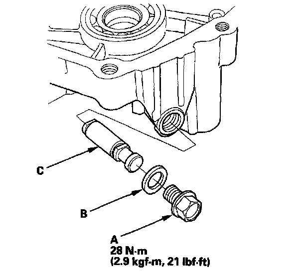 2. Remove the lubrication check valve (C) from the torque converter housing.