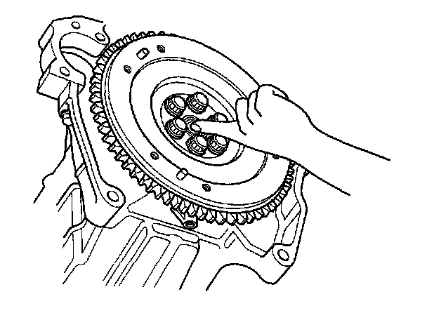 3. Install the flywheel on the crankshaft, and install the mounting bolts finger-tight.