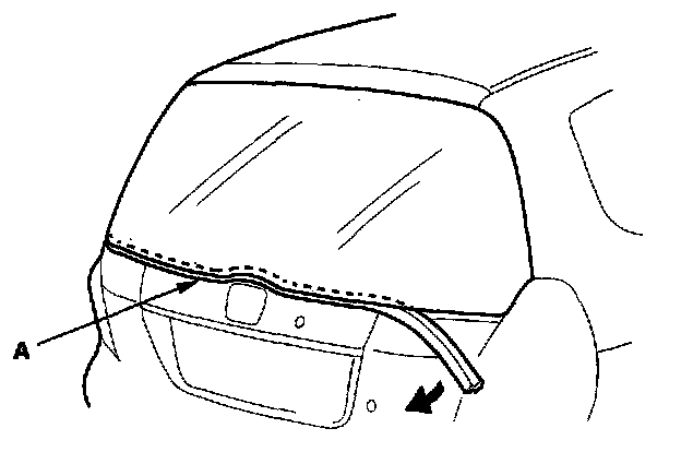 2. Remove the lower rubber dam (A) from the edge of the rear window. If necessary, cut the rubber dam with a utility knife.
