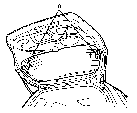 3. Disconnect the rear window defogger connectors (A).