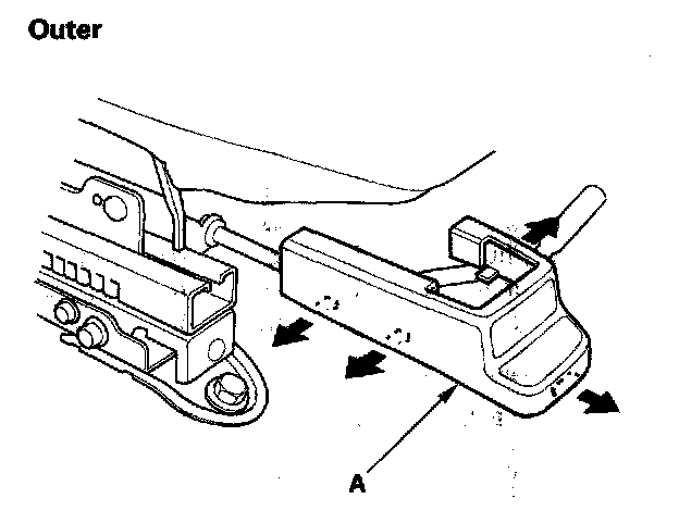 4. Passenger's: Remove the seat track and covers (A) from the front of both seat tracks.