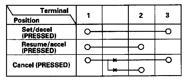 5. If the switch is OK, but switch failure has occurred on the cruise control unit input test (2004-2005 models) or cruise control input test (2006-2007 models), check and repair the wire harness on the switch circuit.