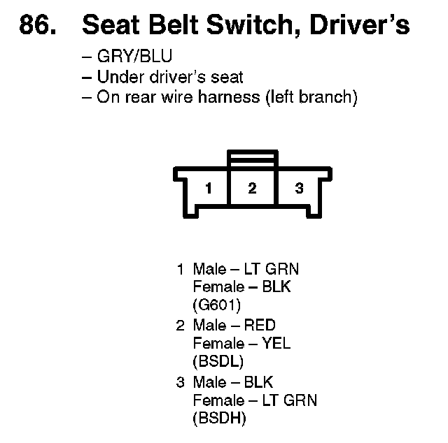 86. Seat Belt Switch, Driver's: