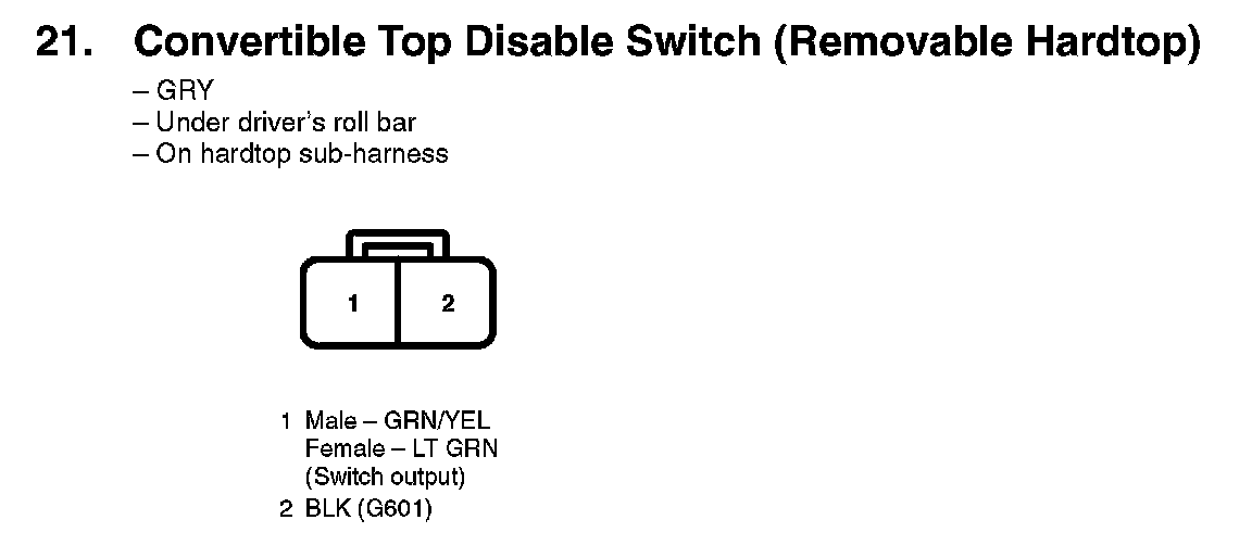 21. Convertible Top Disable Switch (Removable Hardtop):
