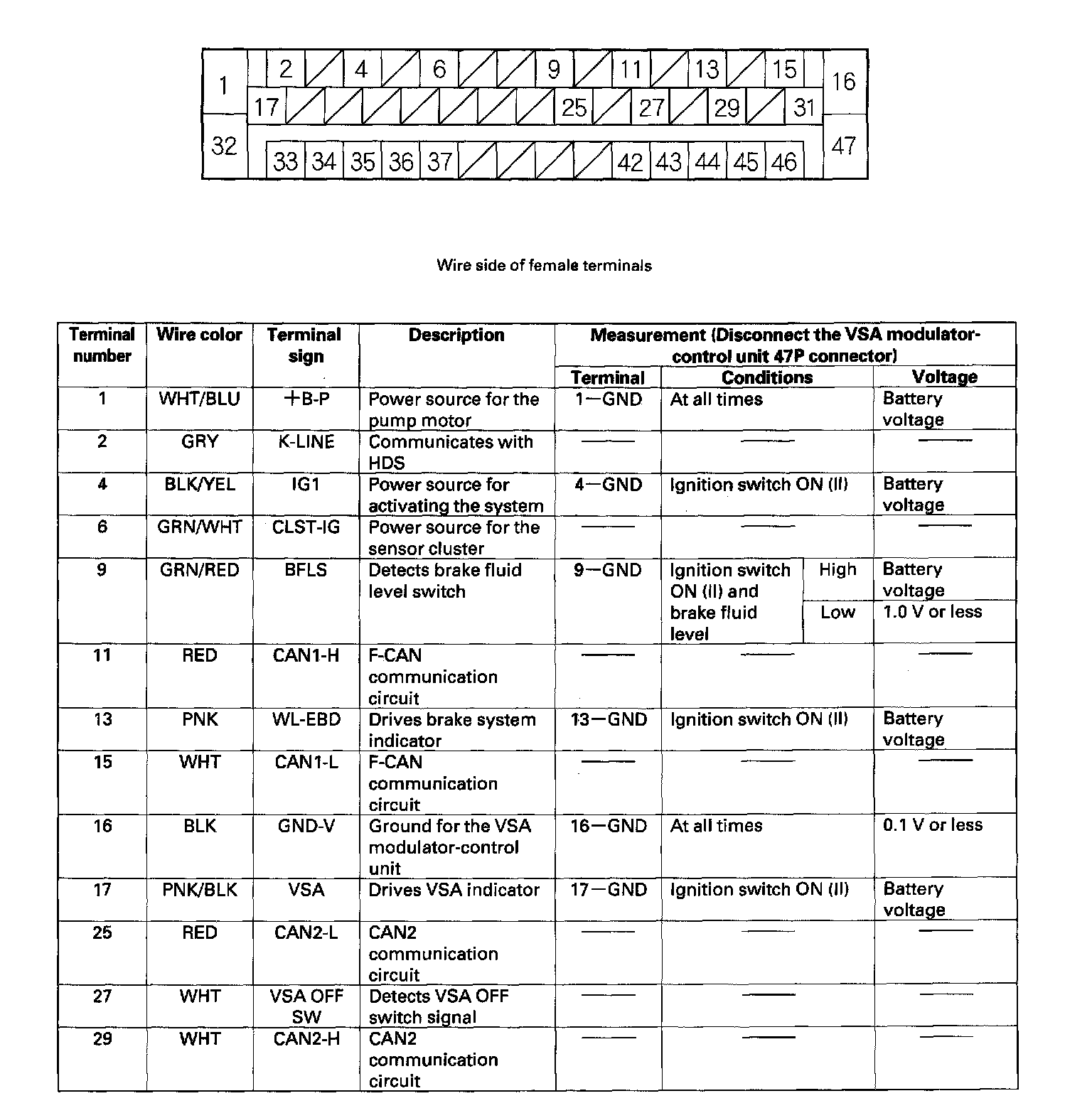 VSA Modulator-Control Unit Inputs and Outputs For 47P Connector: