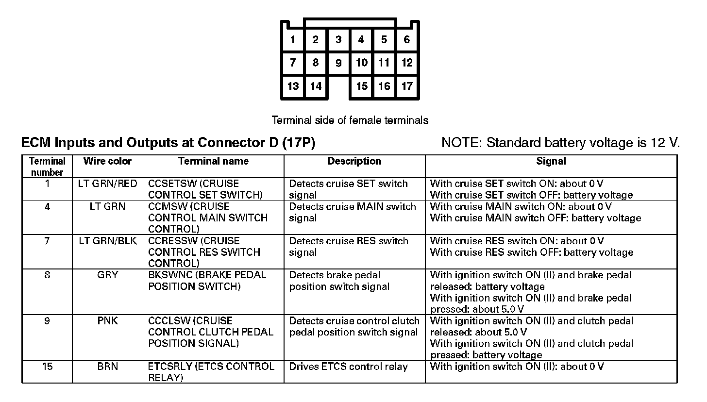 ECM Inputs And Outputs At Connector D (17P):