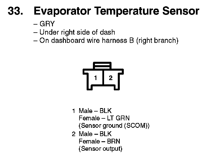 33. Evaporator Temperature Sensor: