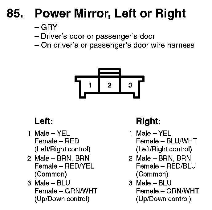 85. Power Mirror, Left Or Right: