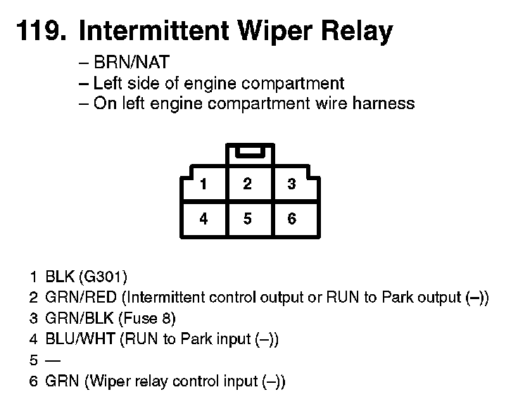 119. Intermittent Wiper Relay: