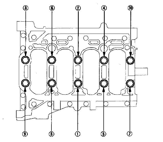 7. Tighten the bearing cap bolts in sequence to 29 Nm (3.0 kgf-m, 22 ft. lbs.).