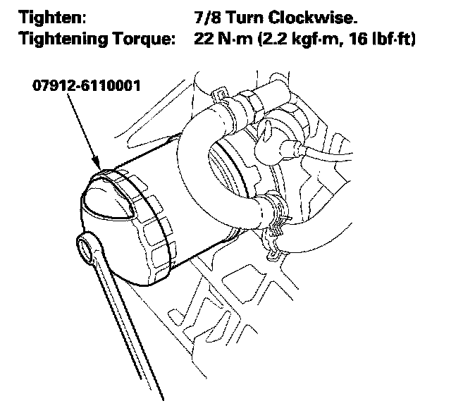 4. After the rubber seal seats, tighten the oil filter clockwise with the special tool.