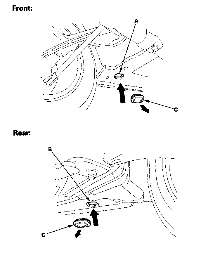 NOTE: The tie down hook slots use rubber plugs (C) to cover the openings.